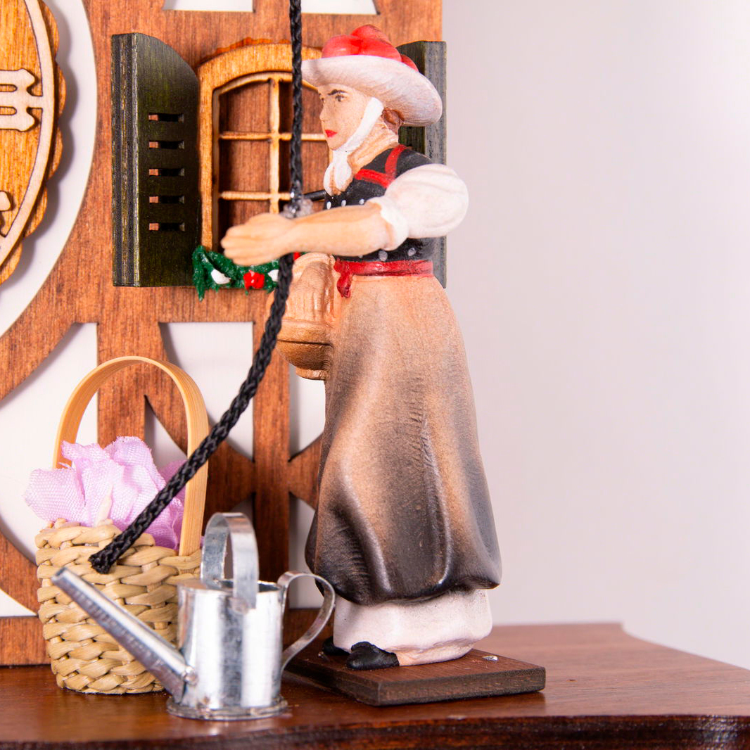 Механизм: Механические часы с кукушкой, которые работают от гирь на цепной тяге. Сделан на фирме SBS-Feintechnik GmbH & Co. KG Германия. Шварцвальдский дом со звонарём. Запас хода на 8 дней. Ручное отключение звука. В каждые пол часа кукушка появляется из своего домика, наклоняется и воспроизводит звук кукушки (ку-ку) один раз, в каждый полный час она кукует столько раз сколько показывают стрелки на часах. Одна гиря отвечает за ход часов, вторая за работу механизма кукушки и звоноря.