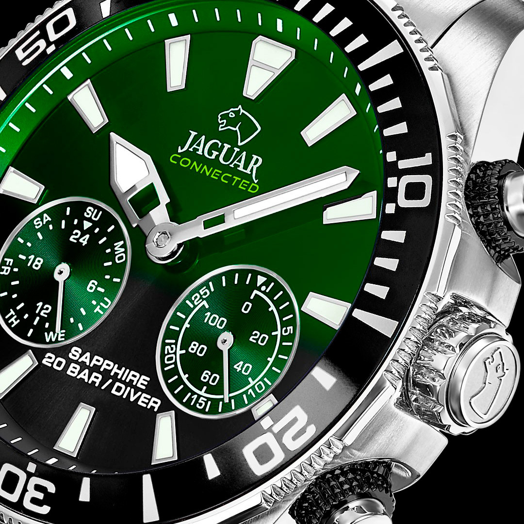 Механизм: Кварцевый гибридный механизм швейцарского производства со Смарт-Модулем. Данный тип механизма обеспечивает возможность подключить часы к телефону через Bluetooth и управлять большим рядом дополнительных функций на выбор с помошью приложения Jaguar.