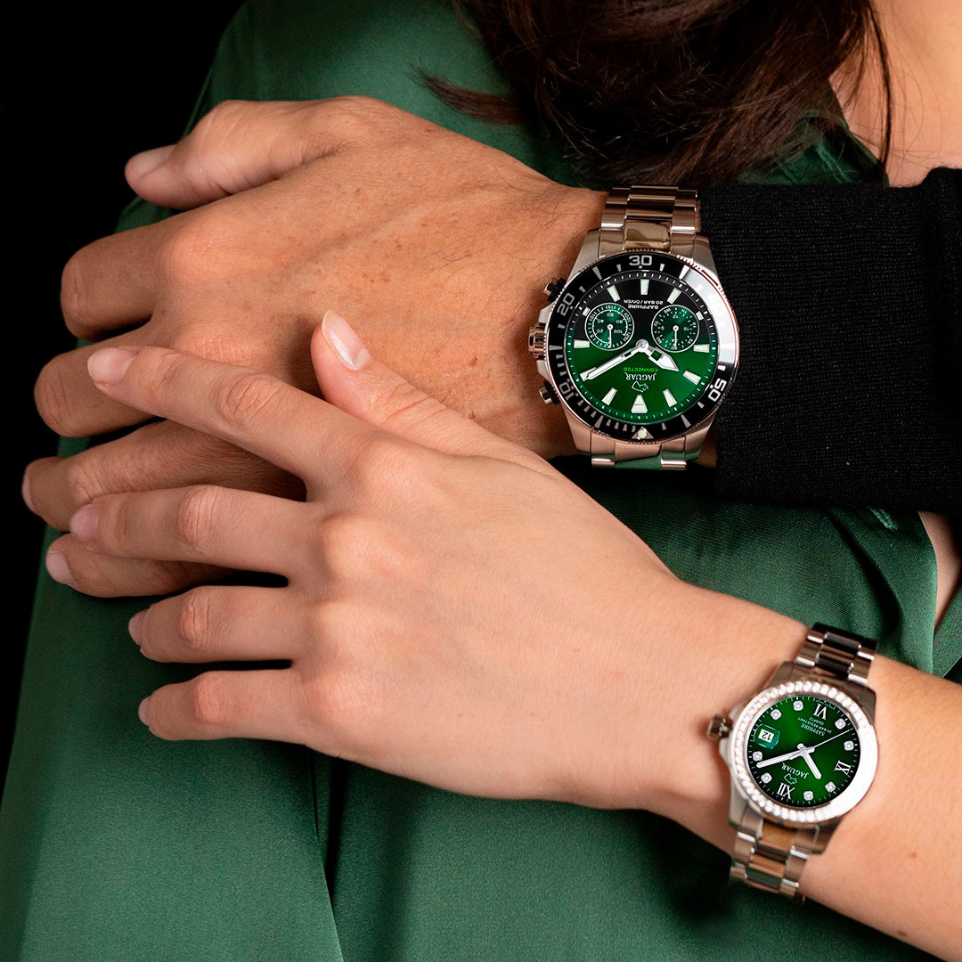 Корпус: Часы изготовлены из нержавеющей стали 316L, поверхности с матовой шлифовкой сатинированием и глянцевой полировкой. Этот тип стали, благодаря своему составу, особенно устойчив к коррозии, отличается высокой прочностью и устойчивостью к царапинам. Вращающийся в одну сторону безель с PVD покрытием. Зелёный циферблат. Стальные часовые индексы и стрелки с люминесцентным покрытием Super-LumiNova, обеспечивают идеальную читаемость. Сапфировое стекло с антибликовым покрытием, предотвращающее появление неприятных отражений, которые мешают правильному считыванию циферблата при определенных условиях освещения. Завинчивающаяся заводная головка. Диаметр: 46 мм. Водонепроницаемость: 200 м.