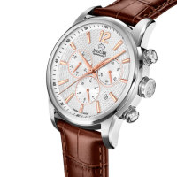 Функции: Индикация часов и минут при помощи центральных стрелок, с апертурой даты в положении "4 часов". Хронограф.