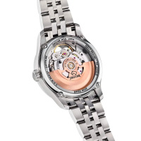 Корпус: Часы изготовлены из нержавеющей стали 316L, поверхности с матовой шлифовкой сатинированием и глянцевой полировкой. Этот тип стали, благодаря своему составу, особенно устойчив к коррозии, отличается высокой прочностью и устойчивостью к царапинам. Циферблат чёрного цвета украшен кристаллами в роли часовых индексов, крупная апертура в виде сердца, открывающая обзор на балансовое колесо. Сапфировое стекло с антибликовым покрытием, предотвращающее появление неприятных отражений, которые мешают правильному считыванию циферблата при определенных условиях освещения. Диаметр: 34 мм. Водонепроницаемость: 50м