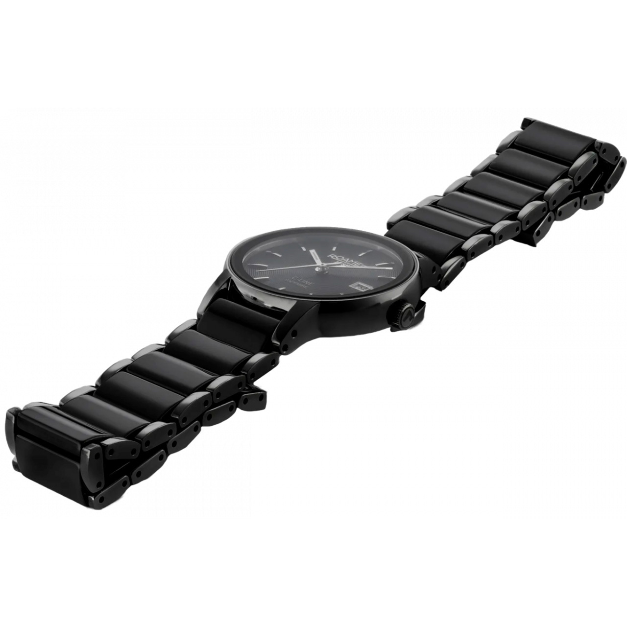 Ремешок: Часы оснащены металлическим браслетом с IP-покрытием и черными керамическими вставками. Браслетная застежка с тройным сложением – «бабочка».