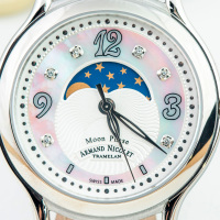 Корпус: Корпус из нержавеющей стали. Перламутровый циферблат часов украшен декоративным узором - гильоше и защищен практичным сапфировым стеклом устойчивым к механическим повреждениям. Диаметр 38.5 мм. Водозащита 30 м.