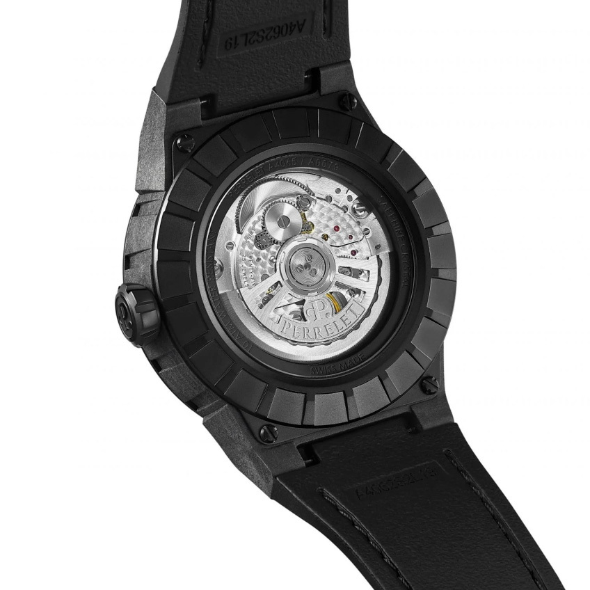 Механизм: Швейцарский механизм с автоматическим подзаводом In-house калибр Perrelet P-331-MH модифицированный и декорированный на мануфактуре Perrelet. Запас хода составляет около 42 часов. Точность хода механизма часов отрегулирована в соответствии с сертификатом C.O.S.C.