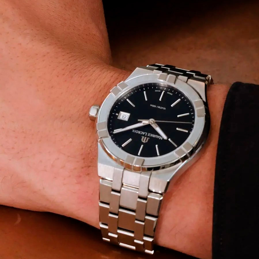 Ремешок: Браслет из нержавеющей стали с литыми звеньями в пять рядов, система быстрой замены ремешка/браслета, браслетная застежка с тройным сложением – «бабочка», раскладывающаяся при нажатии кнопок двойной блокировки, гравировка Maurice Lacroix.