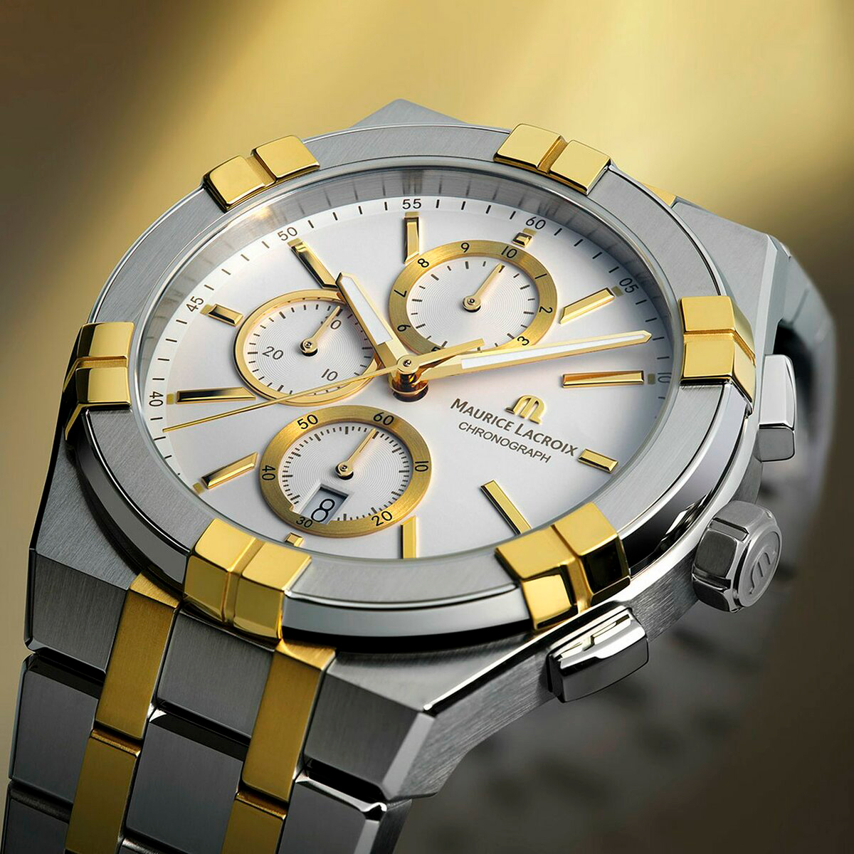 Ремешок: Браслет из нержавеющей стали с литыми звеньями в пять рядов с частичным ионным покрытием, система быстрой замены ремешка/браслета, браслетная застежка, раскладывающаяся при нажатии кнопок двойной блокировки, гравировка Maurice Lacroix.