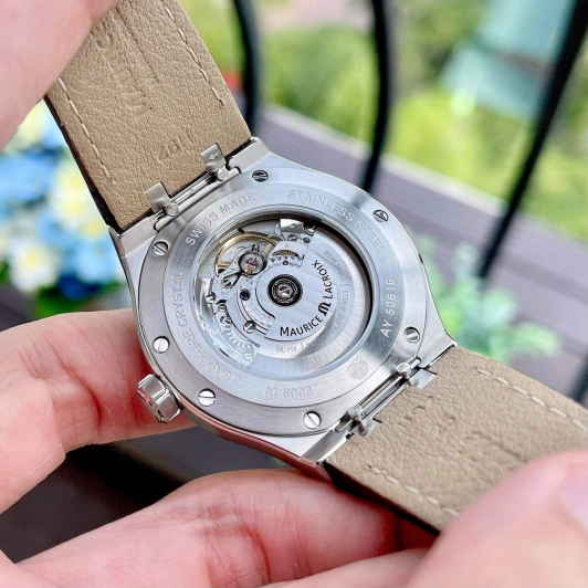 Ремешок: Удобный кожаный ремешок с логотипом Maurice Lacroix ''M'', коричневого цвета, система быстрой замены ремешка. Раскладывающаяся стальная застежка.