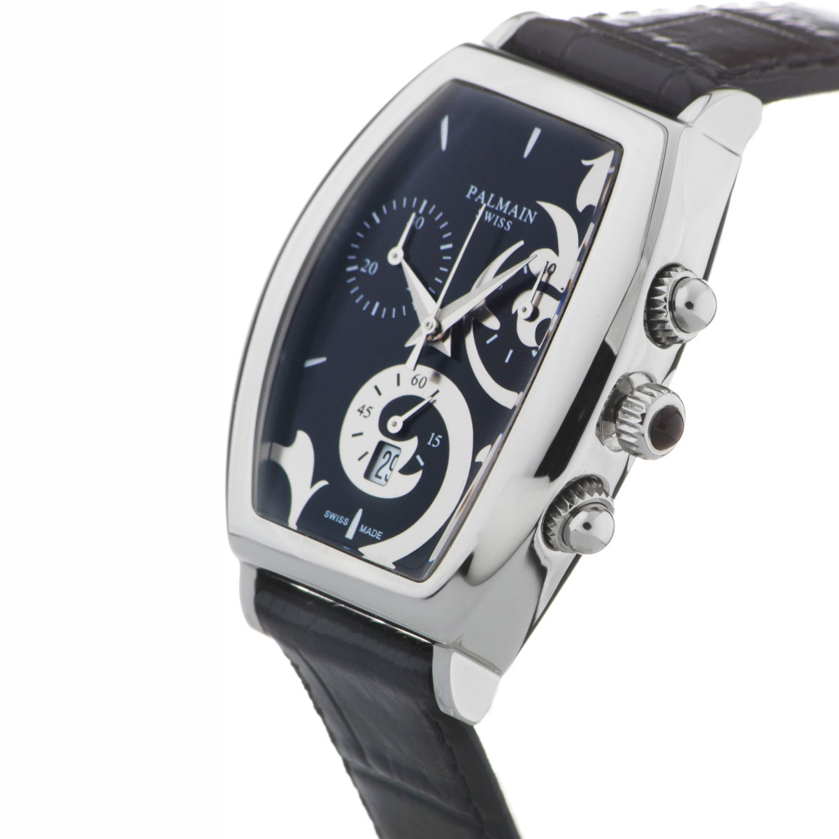 Функции: Индикация часов, минут при помощи центральных стрелок. Маленькая, отдельно вынесенная секундная стрелка и дата в положении "6 часов". Хронограф.
