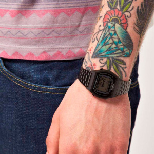 Корпус: Корпус часов выполнен из пластика с хромированным покрытием чёрного цвета. Циферблат чёрного цвета вокруг дисплея. Дисплей серого цвета, цифры чёрного. Акриловое стекло. Габаритные размеры: 38,9x35мм, толщина 9,4мм, вес 44г. Водозащита: 30м.