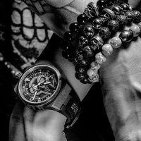 Ремешок: Ремешок чёрного цвета выполнен из натурального каучука, литая застежка - пряжка из нержавеющей стали с покрытием.