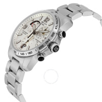 Функции: Индикация часов, минут при помощи центральных стрелок. Хронограф с 60-ти секундным, 30-ти минутным и 12-ти часовым счетчиками, индикация 2-го часового пояса на "10" часов, индикация даты и вынесенная секундная стрелка на "6" часов.