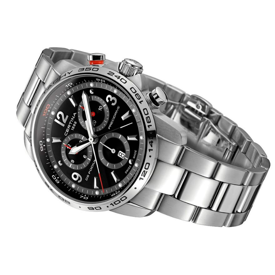 Корпус: Корпус из полированной/матовой нержавеющей стали, безель с тахиметрической шкалой. Чёрный циферблат с серебристыми стрелками (часовая, минутная) и рисками. Часовая и минутная стрелки с люминесцентным покрытием. Сапфировое стекло с антибликовым покрытием. Диаметр 44 мм. Водостойкость 200 м. Система DS.