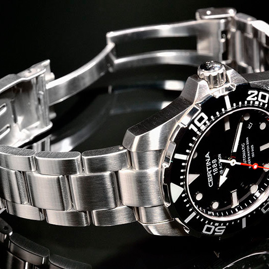 Корпус: Корпус из нержавеющей полированной/матовой стали. Вращающийся в одном направлении безель с 60 - минутной шкалой на полированном чёрном кольце. Чёрный циферблат. Стрелки и часовые индексы серебристого цвета с люминесцентным покрытием. Завинчивающаяся заводная коронка. Сапфировое стекло с антибликовым покрытием. Диаметр 43.2 мм. Водостойкость 200 м. Система DS.