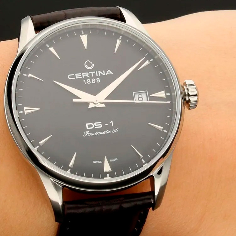 Корпус: Корпус из нержавеющей полированной/матовой стали. Чёрный циферблат выполнен с узором Sunray. Стрелки и риски серебристого цвета. Сапфировое стекло с антибликовым покрытием. Диаметр 40 мм. Водостойкость 100 м. Система DS.