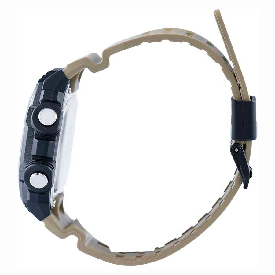 Корпус: Корпус из полимерного материала серого цвета. Циферблат ЖК серый, защищён акриловым стеклом. Яркая светодиодная подсветка позволяет использовать часы в темноте, LED-индикатор мигает при окончании работы секундомера или таймера. Стальная задняя крышка крепится на 4-х винтах. Габаритные размеры: 50,4 x 50,5 мм, толщина 13,5 мм, вес 63г. Водозащита: 20 ATM.