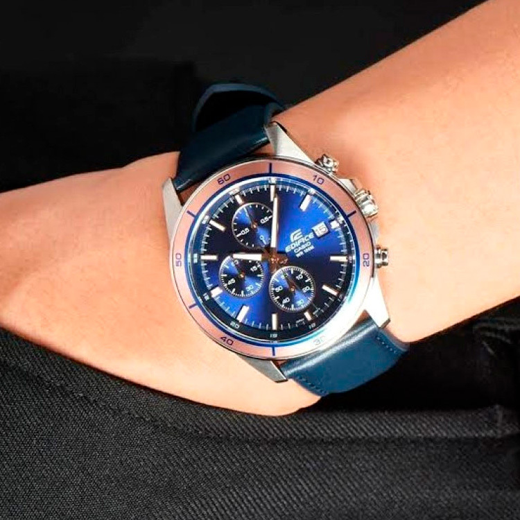 Ремешок: Ремешок из натуральной кожи синего цвета с классической застежкой.