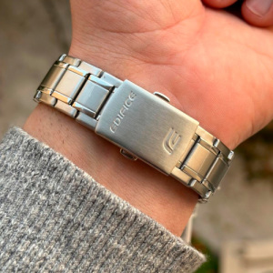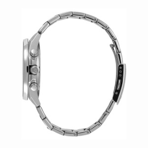 Ремешок: Корпус выполнен из высококачественной стали с повышенной устойчивостью к коррозии, поверхности с матовой шлифовкой – сатинированием и полировкой до зеркального блеска. Браслет с тройной раскладывающейся застежкой, расстегиваемой одним касанием.