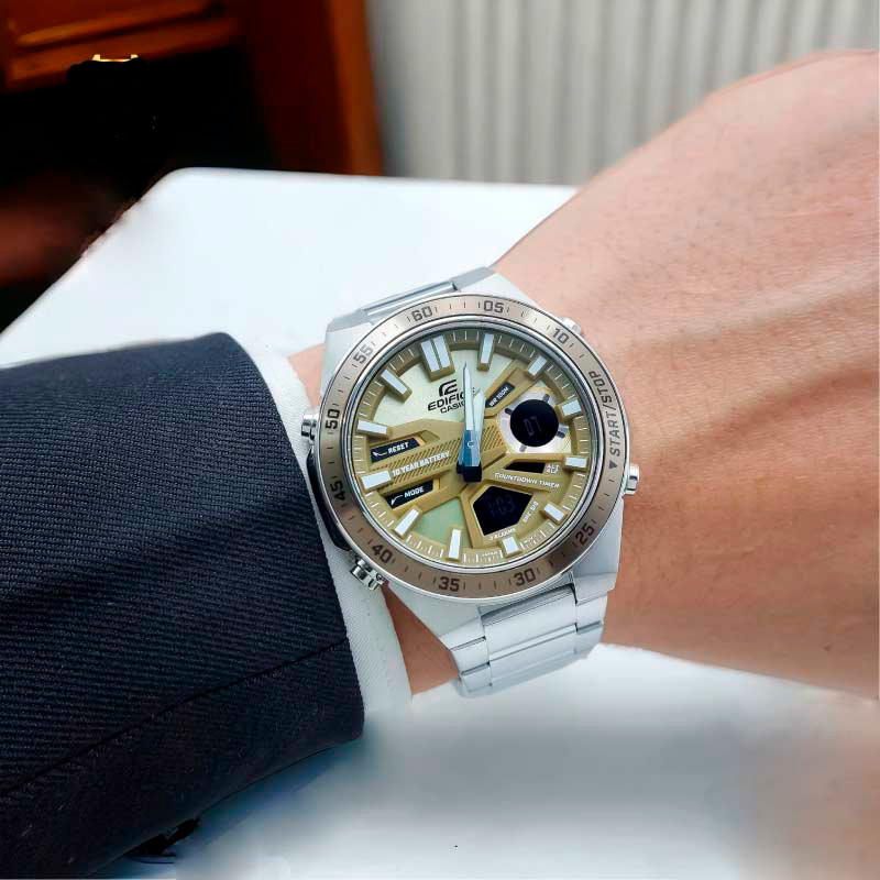 Функции: Часы с аналогово-цифровым отображением времени и 10-ти летним аккумулятором. Индикация часов и минут при помощи центральных стрелок. Записная книжка на 30 ячеек памяти для записи имен и телефонных номеров, каждая запись может включать в себя текст из 8 букв и 12 цифр. Мировое время – 30 городов (29 часовых поясов), возможность включения/отключения летнего времени. 12-ти и 24-х часовой формат времени. Секундомер с точностью показаний 1/100с и временем измерения 24ч. Сплит-хронограф. Таймер обратного отсчета от 1мин до 24ч. 3 будильника, один с функцией Snooze, ежечасный сигнал.