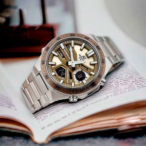 Корпус: Корпус выполнены из высококачественной стали с антикоррозийными свойствами. Безель с IP-покрытием. Циферблат бежевого цвета с контрастными индексами. Метки в виде штрихов. Необритовое светонакопительное покрытие обеспечивает длительное послесвечение в темноте даже после кратковременного нахождения на свету. Минеральное стекло устойчиво к появлению царапин. Завинчивающаяся заводная головка с защитой. Диаметр 47 мм. Водонепроницаемость 100 М.