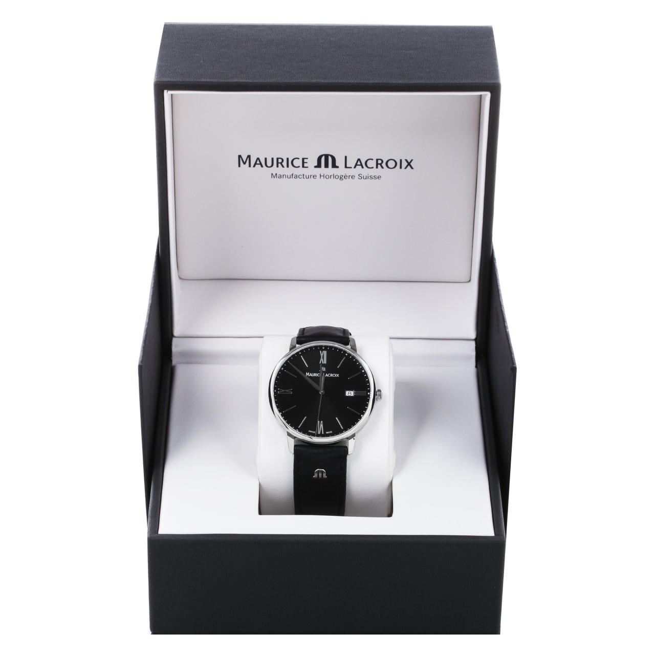 Ремешок: Ремешок из высококачественной кожи черного цвета, с прошивкой и украшенным значком в виде логотипа бренда, классическая застежка – пряжка из нержавеющей стали, гравировка Maurice Lacroix.