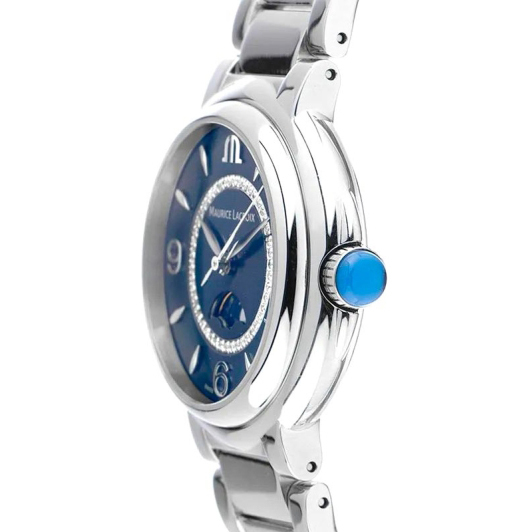 Корпус: Корпус из стали марки 316L. Синий циферблат украшают бриллианты 46 штук (Ø 0,80мм, SI, Wesselton, 0,124 карата). Сапфировое стекло с антибликовым покрытием. Диаметр: 32 мм. Водонепроницаемость 30 м.