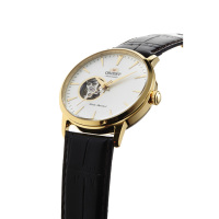 Корпус: Корпус из высококачественного стального сплава с высокими антикоррозийными свойствами с IP покрытием цвета желтого золота. Циферблат белого цвета с открытым балансом хода. Стрелки и метками в виде штрихов с золотистого цвета. Сапфировое стекло устойчивое к царапинам. Завинчивающаяся прозрачная задняя крышка. Диаметр корпуса: 41 мм. Толщина: 12 мм. Водонепроницаемость: 50 м.