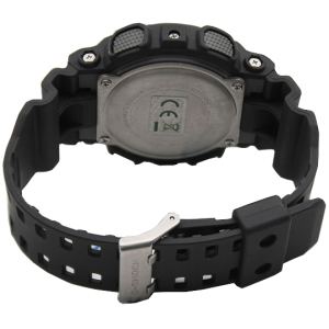 Корпус: Противоударный корпус чёрного цвета из полимерного материала защищает механизм от ударов и вибрации. Часы защищены от магнитных полей. Высококонтрастный электронный черный ЖК-циферблат защищен акриловым стеклом.Циферблат подсвечивается светодиодом, функция автоподсветки освещает циферблат при повороте часов к лицу. Размер 55 мм x 51,2 мм х 16,9 мм. Водозащита 200 метров.