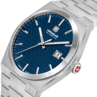 Корпус: Корпус выполнен из высококачественной стали с повышенной устойчивостью к коррозии, поверхности с матовой шлифовкой – сатинированием. Синий циферблат защищен закаленным минеральным стеклом с сапфировым покрытием, обеспечивающим исключительную устойчивость к царапинам. Накладные часовые индексы и срелки выполненый из стали. Стрелки с покрытием SuperLuminova, которое обеспечивает подсветку в темное время суток. Диаметр корпуса: 42 мм. Водозащита до 50 метров позволит принимать душ или умываться, не снимая часов.