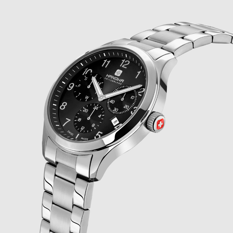 Корпус: Ударопрочный корпус часов сделан из нержавеющей стали. Циферблат чёрного цвета с серебристыми стрелками и часовыми индексами в виде арабских цифр. Часовая и минутная стрелки с люминесцентным покрытием, которое светится в темноте после непродолжительной зарядки на свету. Минеральное стекло. Рифленая заводная головка. Диаметр: 45 мм. Водонепроницаемость: 50 м.