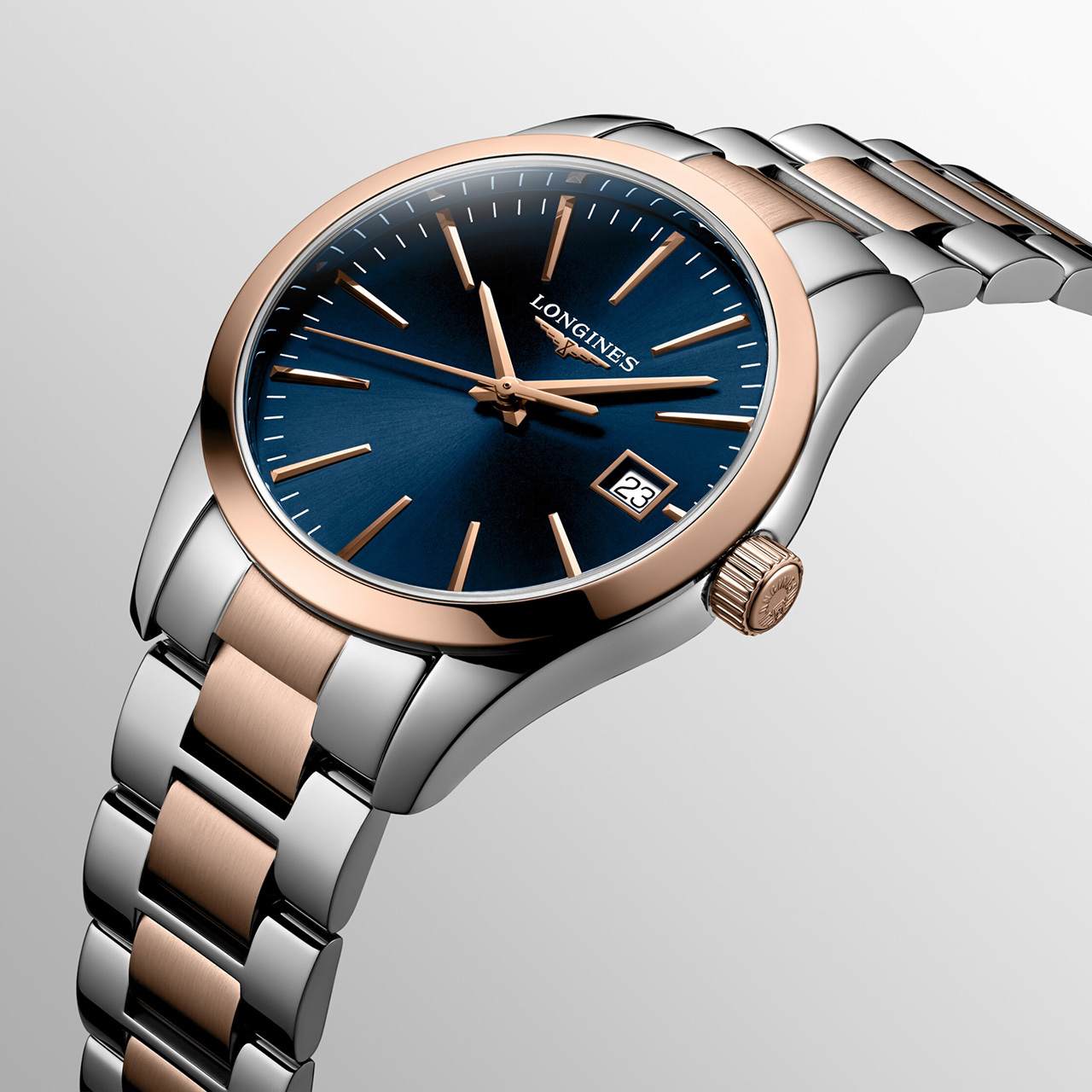 Корпус: Нержавеющая сталь марки 316L, поверхности с матовой шлифовкой сатинированием и глянцевой полировкой. Безель и заводная головка с PVD-покрытием цвета розового золота. Циферблат синего цвета с радиальной шлифовкой в стиле “sunrays”. Аппликация часовых индексов, а также стрелки с алмазной огранкой имеют золотое покрытие и полировку. Устойчивое к царапинам сапфировое стекло с многослойным антибликовым покрытием изнутри. Водонепроницаемость 50 метров. Диаметр 34 мм.