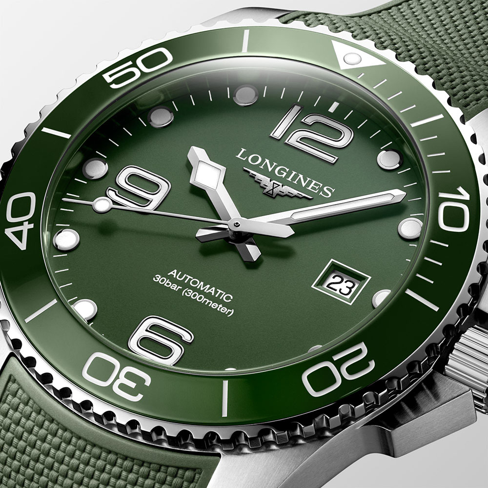 Корпус: Нержавеющая сталь марки 316L. Вращающийся в одном направлении керамический безель зелёного цвета. Зелёный циферблат. Стрелки и часовые индексы серебристого цвета покрыты люминесцентным составом SuperLuminova. Антибликовое покрытие сапфирового стекла позволяет циферблату быть хорошо читаемым и видимым даже в самые солнечные дни. Диаметр 43 мм. Водозащита 300 м.