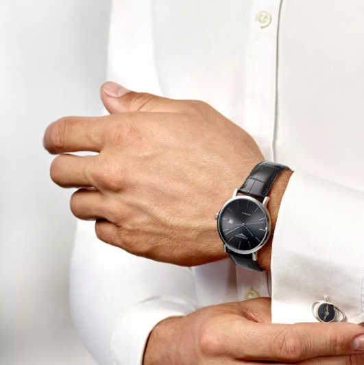 Корпус: Нержавеющая сталь, сапфировое стекло. Диаметр 39 мм, водонепроницаемость 30 метров. Циферблат – графитовый.