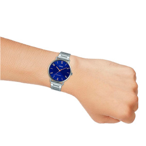 Корпус: Корпус часов выполнен из латуни с хромированным гальваническим покрытием. Синий циферблат. Золотистые стрелки и часовые индексы. Прочное минеральное стекло обеспечит защиту часов от повреждений. Размер копрпуса (Д×Ш×В) 40 × 34 × 7,9 мм. Водонепроницаемость: 30 м.
