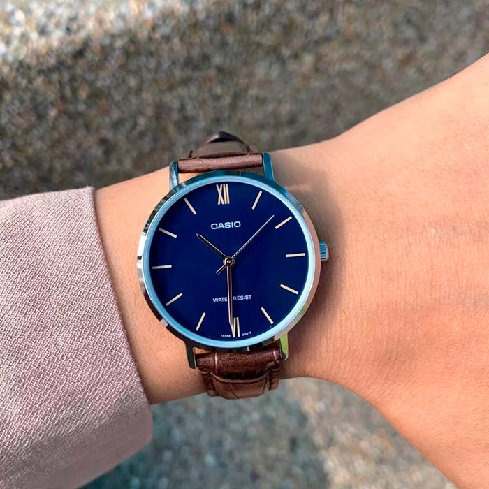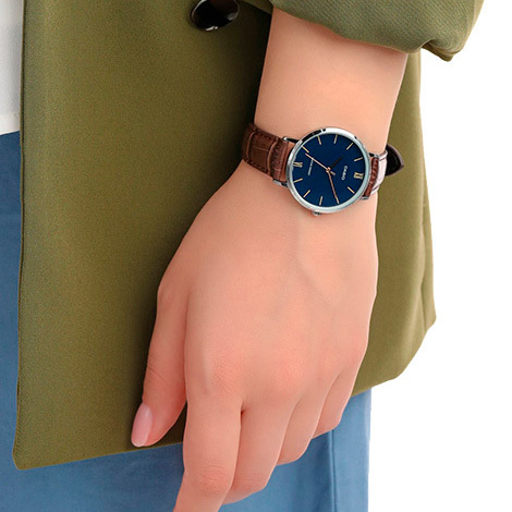 Корпус: Корпус часов выполнен из гипоаллергенной латуни с хромированным покрытием. Синий циферблат, серебристые стрелки и часовые индексы. Прочное минеральное стекло обеспечит защиту часов от повреждений. Диаметр: 34 мм. Водонепроницаемость: 30 м.