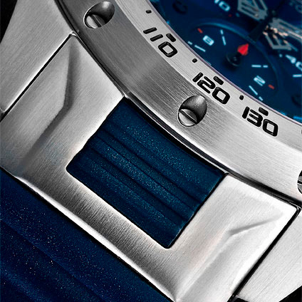 Функции: Хронограф, центральный секундный счетчик, минутный счетчик, часовой счетчик, малая секундная стрелка, дата.