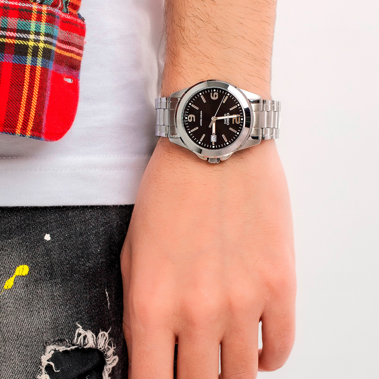 Ремешок: Браслет из нержавеющей стали. Раскладывающаяся застежка с тройным сгибом, расстегивается одним касанием.