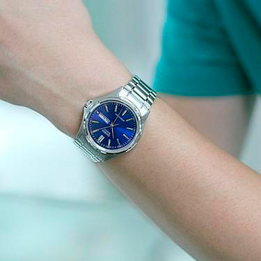 Корпус: Ударопрочный корпус часов сделан из нержавеющей стали. Минеральное стекло устойчивое к возникновению царапин. Синий циферблат, серебристые стрелки и часовые индексы. Диаметр 38,5 мм. Водонепроницаемость 30 м.