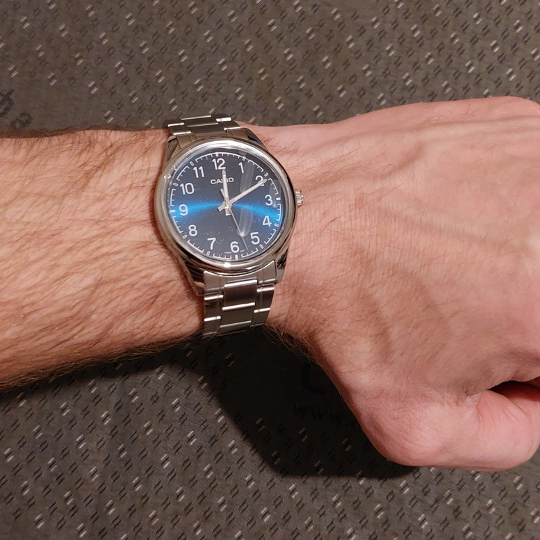Корпус: Корпус из высококачественного стального сплава с высокими антикоррозийными свойствами. Синий циферблат. Прочное минеральное стекло обеспечит защиту часов от повреждений. Размер: 40x47 мм, толщина 8,1 мм, вес 90 г. Водонепроницаемость: 100 м.