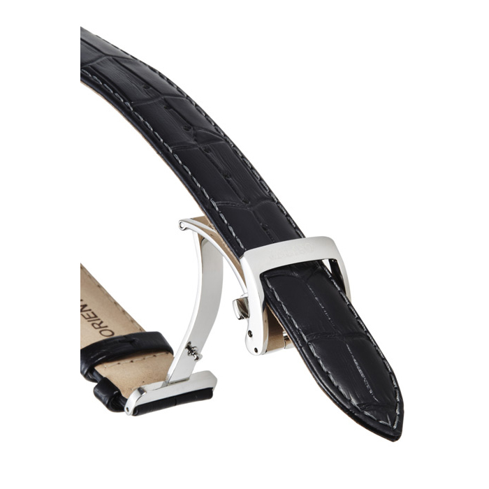 Ремешок: Черный кожаный ремешок с раскладывающейся застежкой.