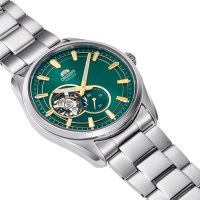 Корпус: Нержавеющая сталь. Сапфировое стекло устойчивое к царапинам. Зелёный циферблат двухслойный, что придает ему объемный вид и привлекает внимание к движению часовой и минутной стрелок. Прозрачная винтовая задняя крышка. Стрелки и метки покрыты люминесцентным напылением что обеспечивает подсветку в темное время суток. Водозащита - 50 метров. Диаметр 41 мм.