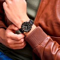 Корпус: Корпус выполнен из нержавеющей стали c PVD-покрытием, безель чёрнорго цвета. Чёрный циферблат с часовыми индексами в виде штрихов и цифр. Стрелки и метки с люминесцентным покрытием. Рифленая заводная головка с защитой. Устойчивое к возникновению царапин сапфировое стекло. Диаметр корпуса составляет 42 мм. Водостойкость WR 100 (плавание без погружения).