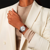 Ремешок: Ремешок коричневого цвета из кожи аллигатора, ширина 18/16 мм. Браслетная застежка, раскладывающаяся при нажатии кнопок двойной блокировки, украшена эмблемой марки.