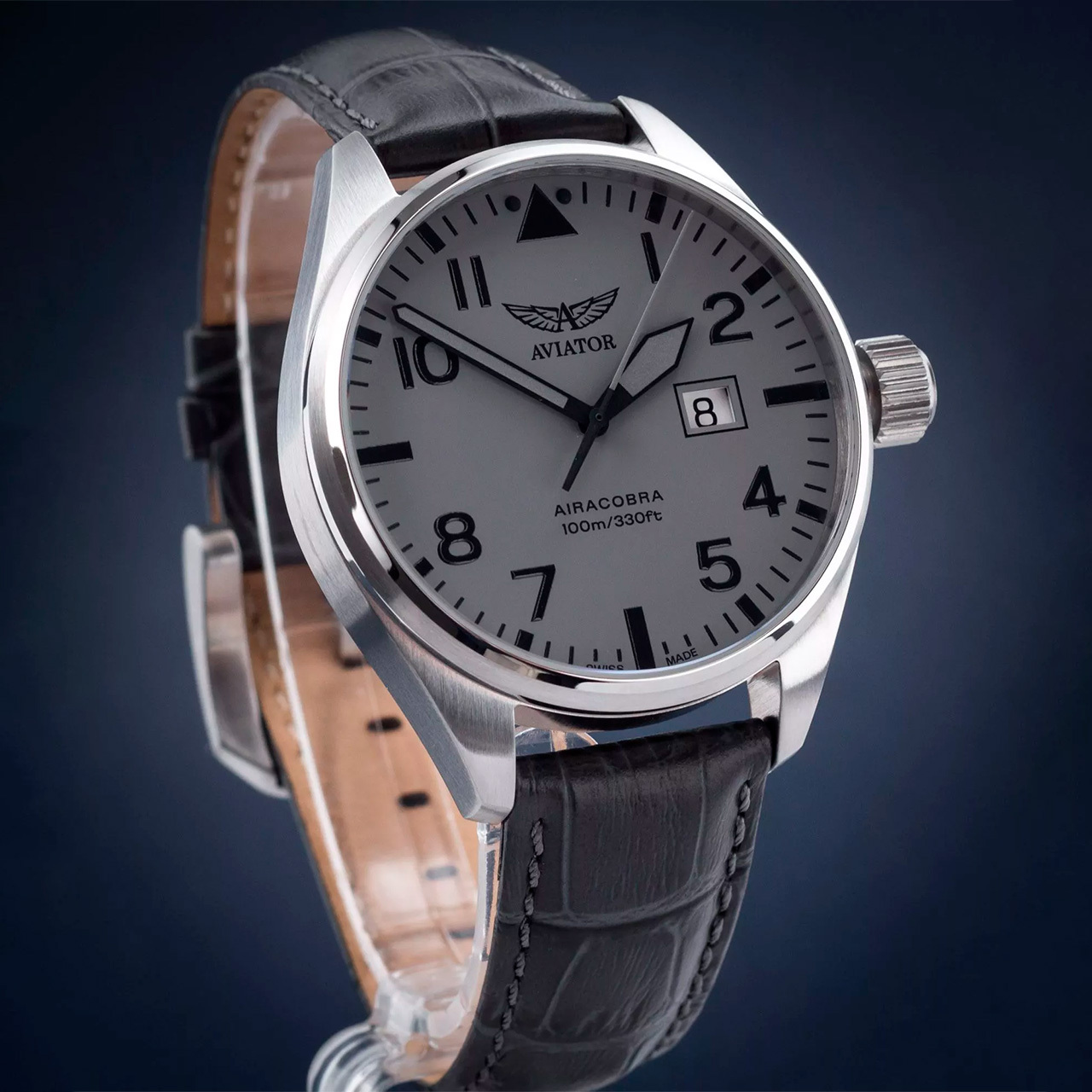 Корпус: Нержавеющая сталь. Циферблат серый, стрелки и часовые индексы с люминесцентным покрытием. Своей матовой зернистой отделкой циферблат часов напоминает приборы из кабины пилота. Лаконичные, высококонтрастные стрелки и часовые метки обеспечивают превосходную четкость и читаемость изображения. Диаметр 42 мм. Сапфировое стекло с антибликовым покрытием. Задняя крышка имеет резьбовое соединение с корпусом. Переводная коронка с двойным уплотнителем и винтовой фиксацией для дополнительной защиты от попадания воды. Водозащита 100 метров. На крышке изображение самого самолета и военная звезда как дань почтения истребителю времен Второй мировой войны.