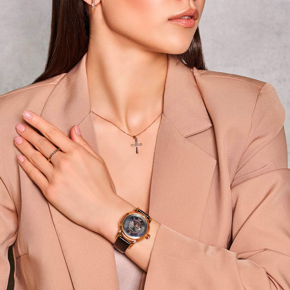 Корпус: Нержавеющая сталь марки 316L с розовым PVD покрытием. Чёрный циферблат. Стрелки и часовые индексы золотистого цвета покрыты люминесцентным составом SuperLuminova. Облака на циферблате украшены перламутровыми вставками. Задняя крышка с гравированным изображением авиалайнера Douglas DC-3 имеет винтовое соединение с корпусом. Рифлёная заводная головка. Сапфировое стекло с антибликовым покрытием. Водонепроницаемость 100 метров. Диаметр 36 мм.