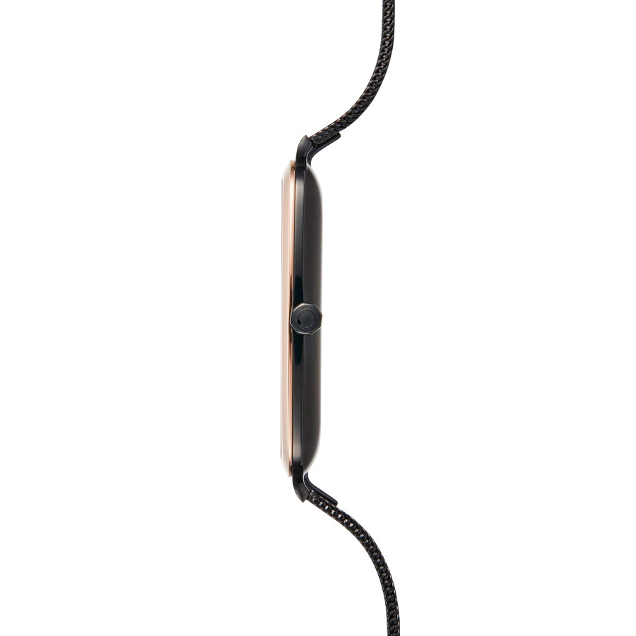 Ремешок: Стальной браслет с чёрным IP покрытием выполнен в технике миланского плетения, раскладная застежка с системой блокировки.