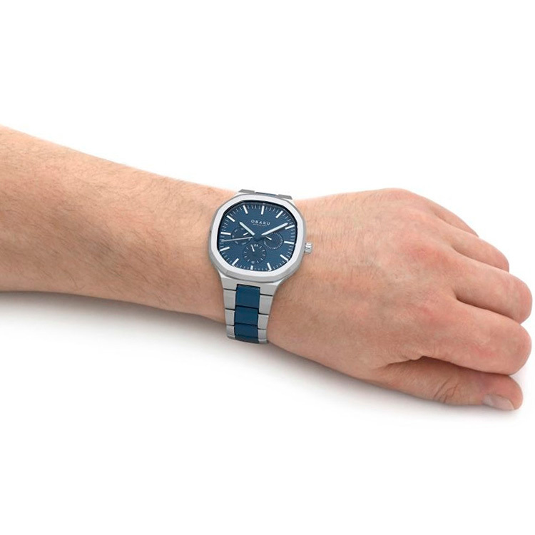 Ремешок: Стальной браслет с частичным синим IP покрытием, раскладывающаяся застежка.