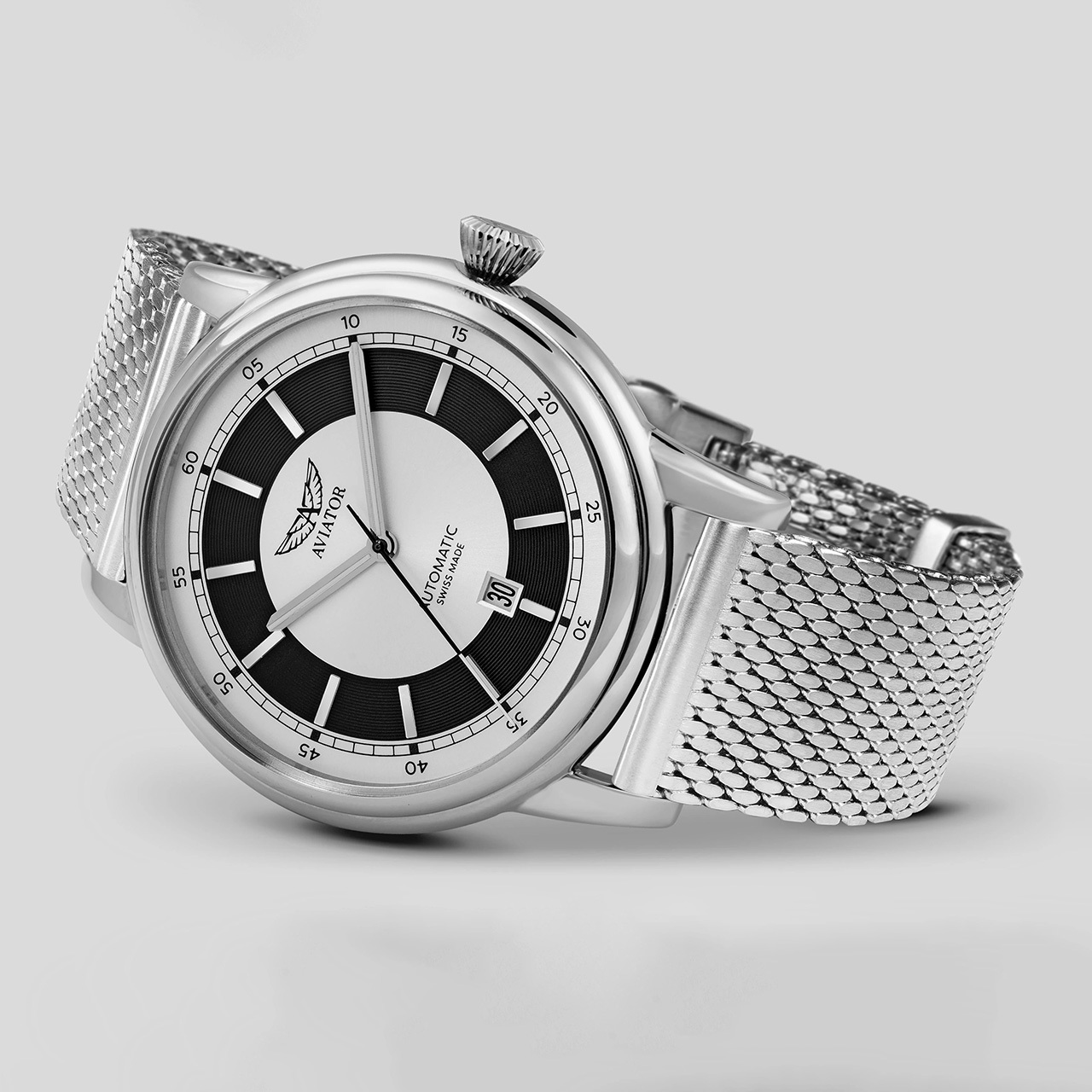 Корпус: Корпус круглой формы выполнен из нержавеющей стали марки 316L. Циферблат выполнен по технологии sun-ray (солнечные лучи). Часовые метки выполнены в виде штрихов. Стрелки и метки с покрытием SuperLuminova. Сапфировое стекло с двусторонним антибликовым покрытием. Прозрачная задняя крышка украшена имитацией функции контроля управления хвоста самолета. Ротор механизма указывает на градусы, как в авиационном приборе триммер. Диаметр 45 мм, толщина 11,5мм. Водозащита 100 метров.