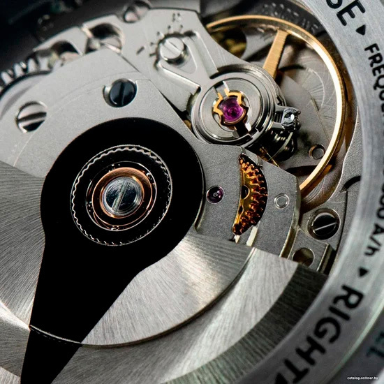 Функции: Центральные часовая, минутная и секундная стрелки, индикация даты в апертуре на отметке “6 часов”.