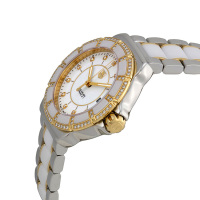 Корпус: Стальной корпус. Комбинированный безель украшен белой керамической вставкой, позолотой и 84 бриллиантами. На циферблате 11 бриллиантов. Сапфировое стекло. Завинчивающаяся заводная коронка, водонепроницаемость 200 метров. Диаметр 37 мм.