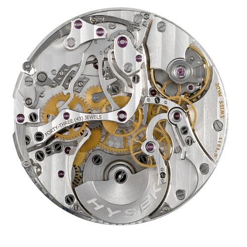 Внутри корпуса установлен автоматический механизм калибра «Hysek HW4058», разработанный и собранный мануфактурой марки. Он стал результатом большой и кропотливой работы инженеров, которые значительно улучшили его функциональность. Механизм на 49 камнях состоит из 412 компонентов. Он оснащён классическим колонным колесом, рычагами и спиралями фацетированными вручную. Калибр интересен своим автоматическим подзаводом, который осуществляется не посредством классического инерционного груза, а с помощью двойного микроротора (из золота 22K с отделкой «Côte de Genève»), интегрированного в сам механизм, видимый как со стороны задней крышки, так и со стороны циферблата. Балансовая частота механизма составляет 28800 полуколебаний в час, запас хода механизма – 48 ±2 часа. Механизм обеспечивает функции часов, минут, секунд, даты и хронографа.